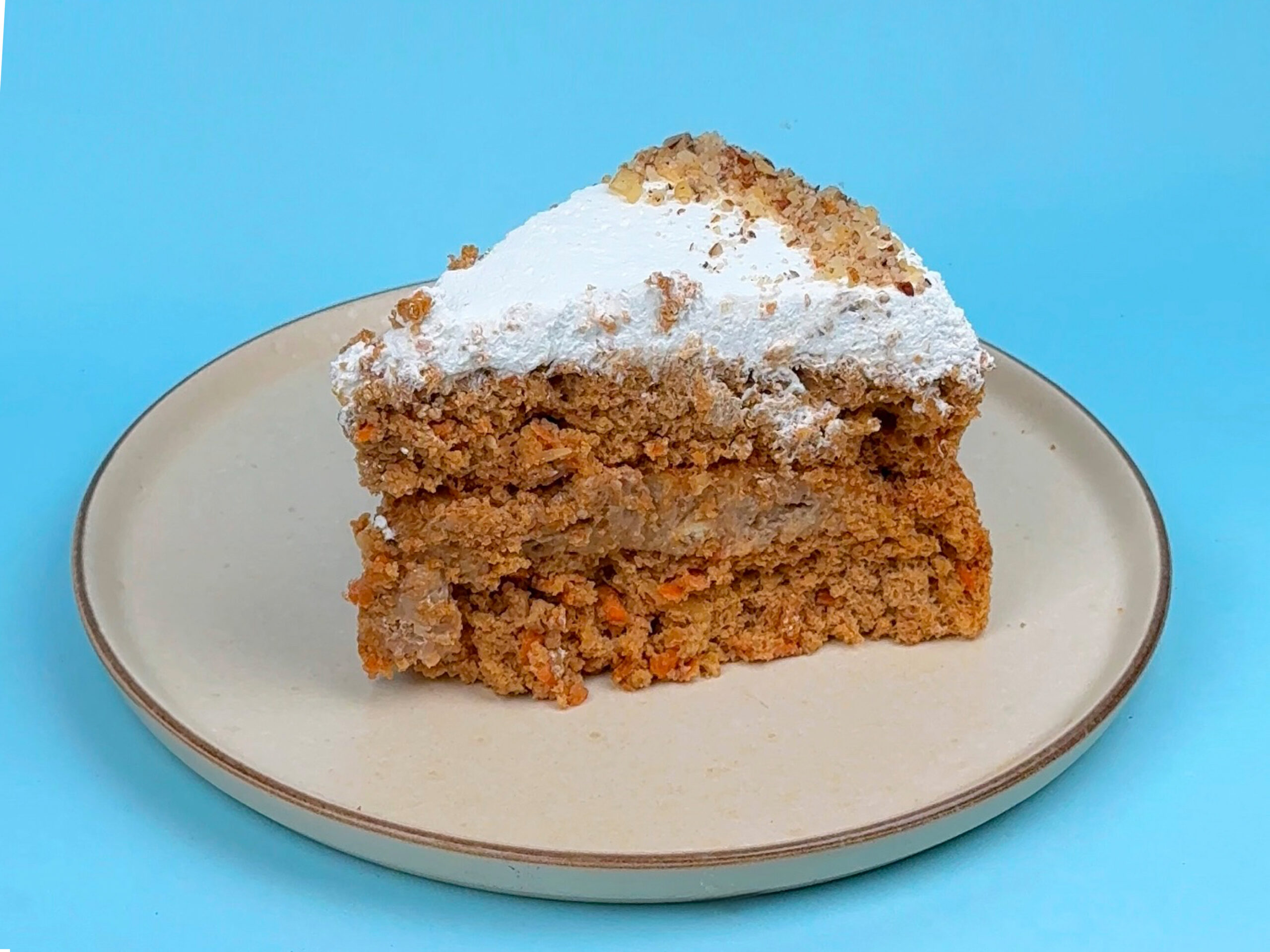 Torta de avena, claras de huevo, panela, whey protein, zanahoria, frutos secos, aceite de coco, stevia y fudge proteína.