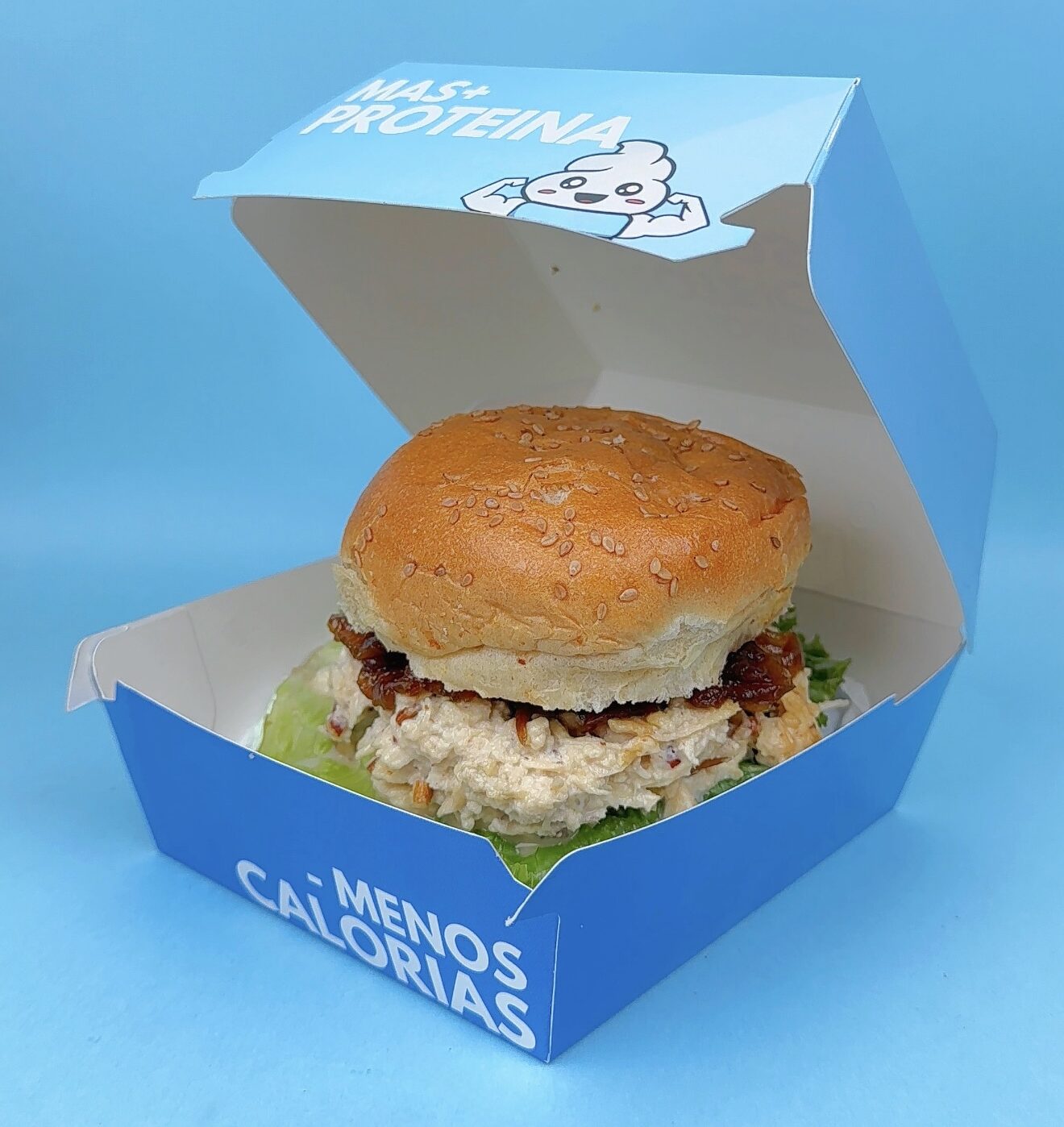 Pan vegano a elección junto con un delicioso pollo crunch; rodajas de tomate; lechuga y cebolla acaramelizada acompañada de una salsa a elección.